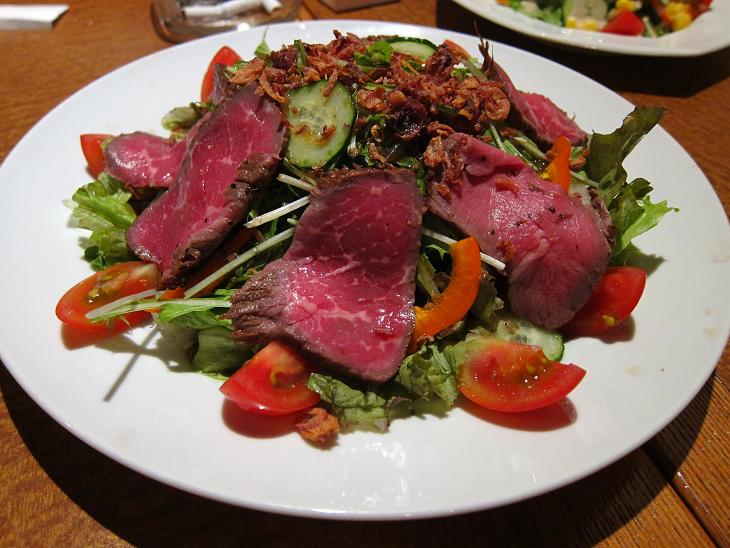 ローストビーフが載っててガーリックのドレシングが美味しかったです。