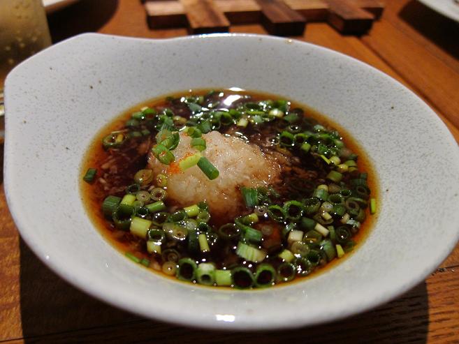 こちらは博多の名物とのこと。ガツにポン酢をかけてありました。ガツの歯切れ感は良く、ポン酢であっさり食べれます。