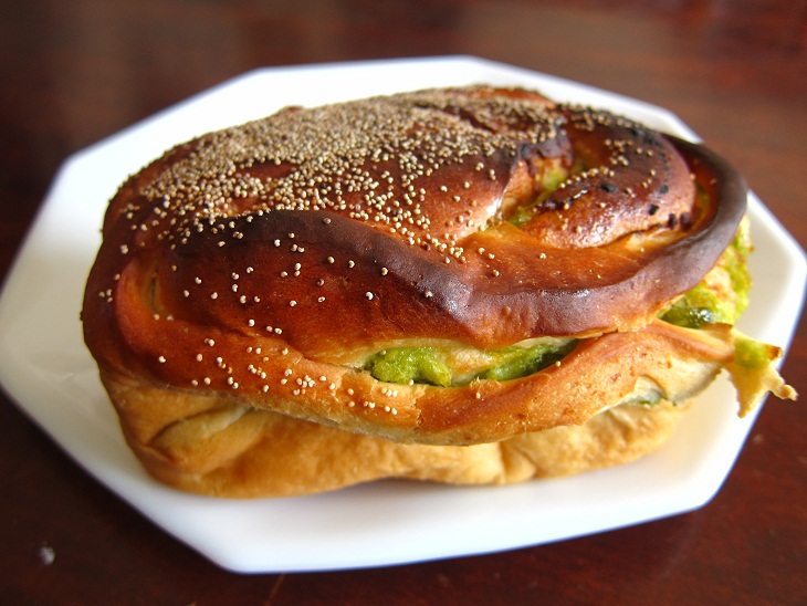 うぐいす豆、うぐいす餡のパンです。豆と餡はパンの周りに入っており、ふんわりしたパンです。