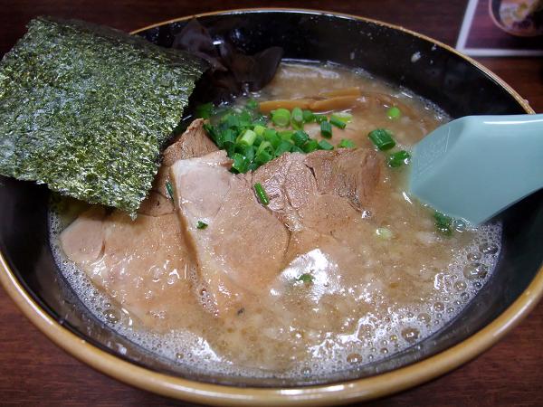 スープはトロみがあるコッテリ豚骨でカエシの味は強め。