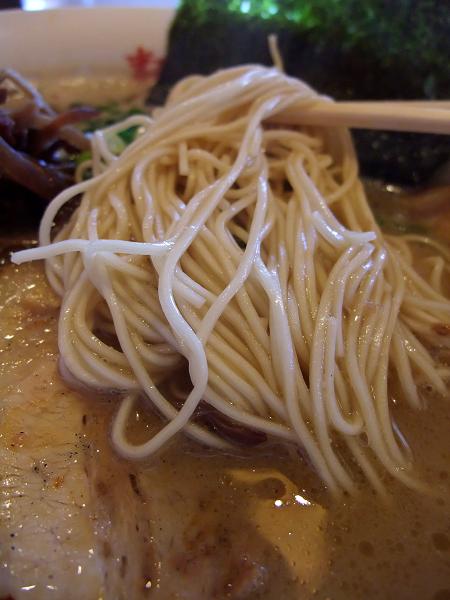 載せものはチャーシュー2枚、ハーフ味玉、海苔、きくらげ、青ネギ。