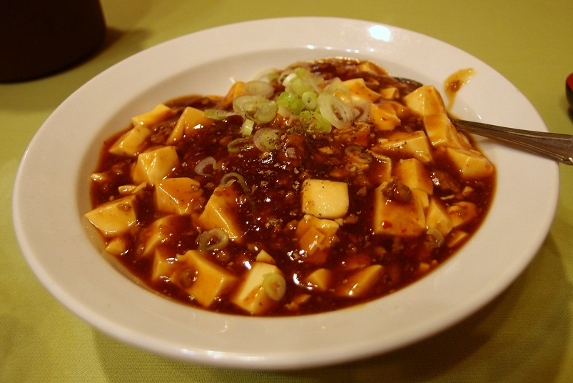 麻婆豆腐は唐辛子が多めに入っていて辛口で汗がいっぱい出るタイプです。