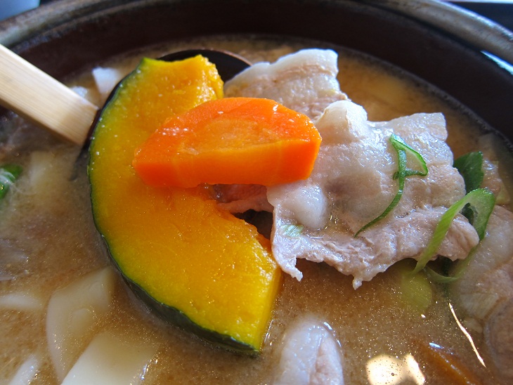 ほうとうは煮込みうどんなので、麺がちょっと柔らかめになるのは分かりますが、自分が引っ張られたくらでは切れないくらいに頑張って欲しいものです。何度か他のお店でほうとうは食べていますがもう少し麺がしっかりしていた気がします。
