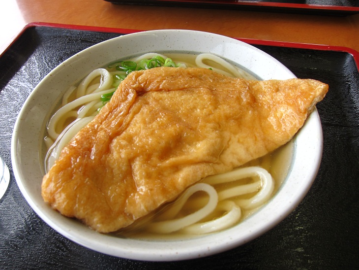 うどんはモッチリしていています。だしは薄めですが、いりこの香りがする美味しいだしです。あげは甘めの味付けですね。