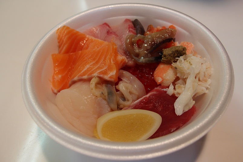 のっけ丼は市場内にあるお店で色々なネタを丼飯にのせて自分好みの丼を作って楽しめるのです。