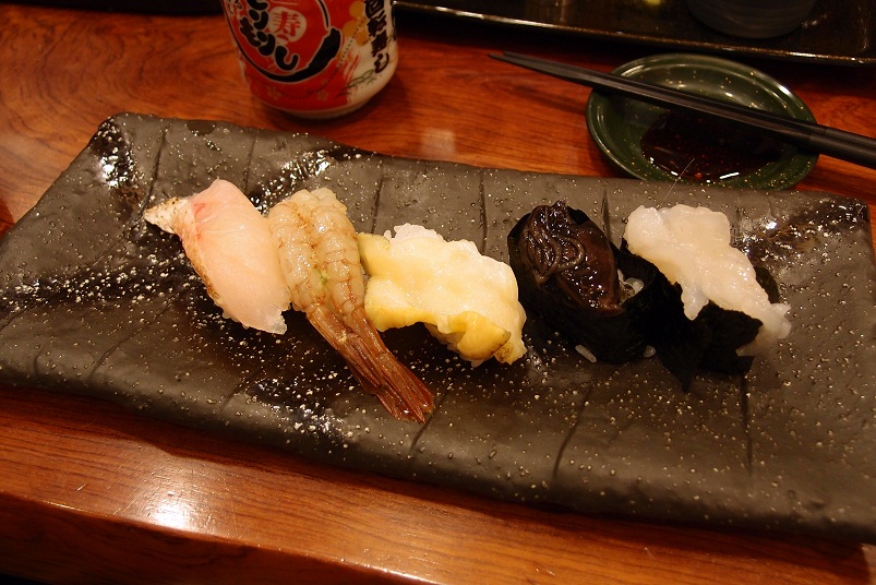 のどぐろ、がすえび、梅貝、ほたるいか黒造り、白えび、全部で5貫ですが食べたいと思っていた北陸のネタが楽しめました。