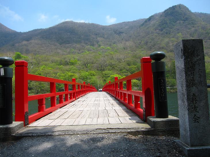 赤い橋を渡ると鳥居があります。