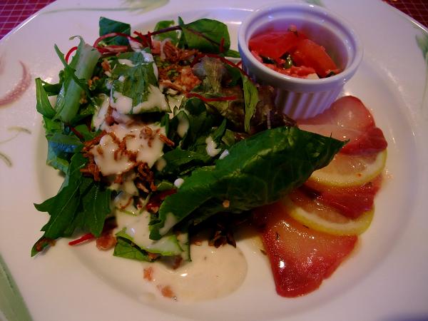 パスタにサラダ、ドリンクがついて1200円くらいでした。