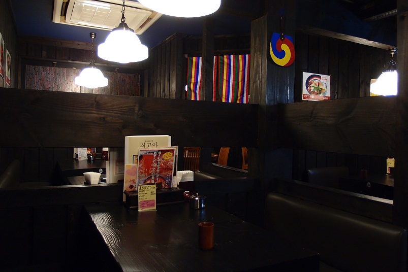 居抜で韓国料理に変身させましたが、原色の赤、青、黄色・・・みたいな装飾をすると以外に違和感ないように思います。