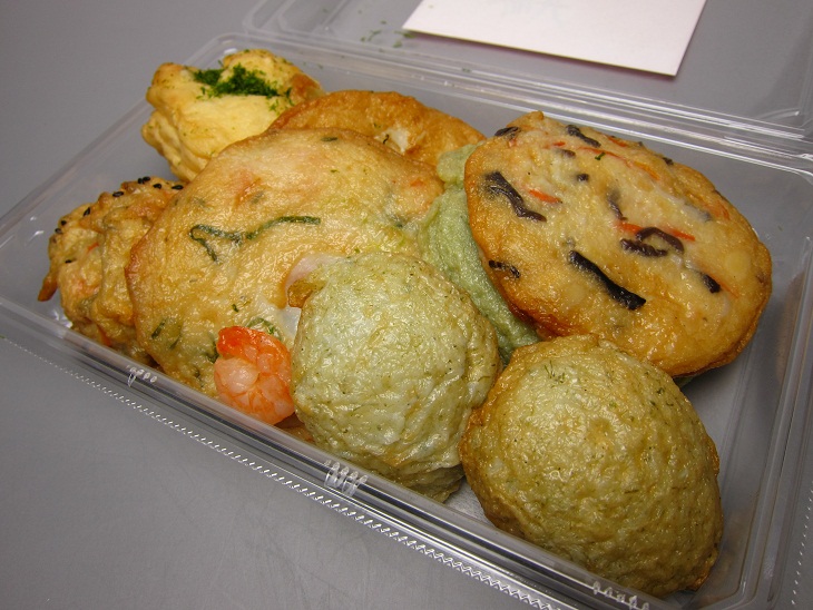 海鮮かき揚げ、海老ネギ、ジャガバター、きんぴら、たまねぎ、竹の子、帆立、手ごろな大きさで色々入っているので楽しめます。