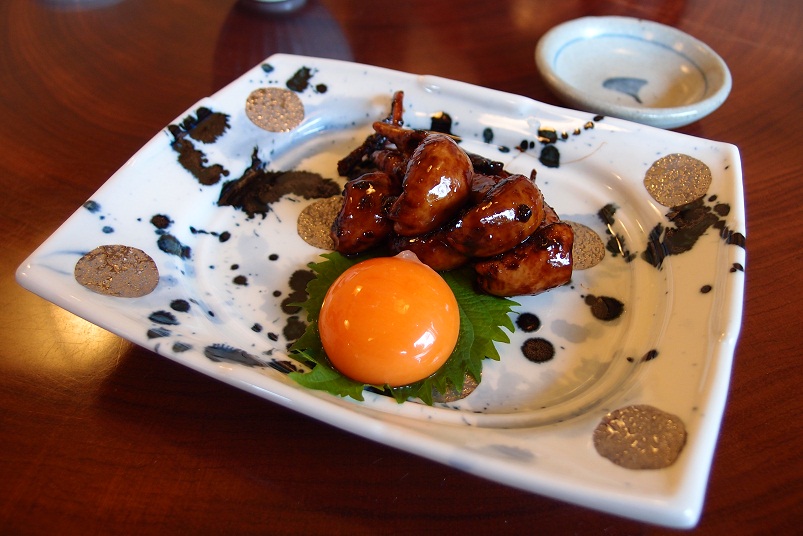 新鮮さがわかる焼き加減。肝の苦味と卵黄のまろやかさが絶妙でした。