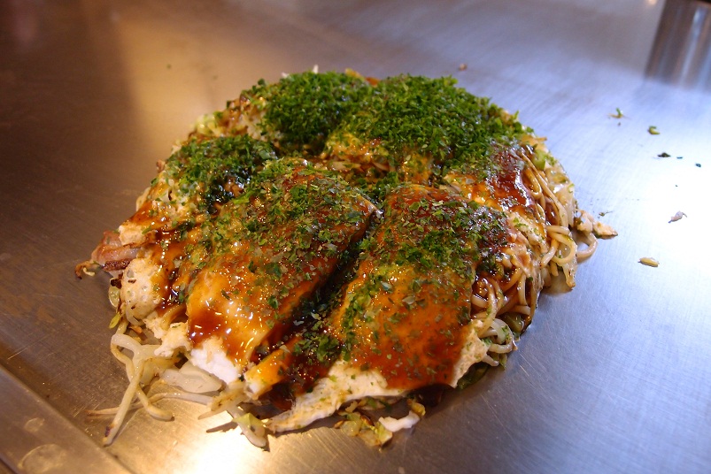 広島焼きもお店によって作り方も色々ですが、ふっくらしたタイプの広島焼きが出来上がりました。