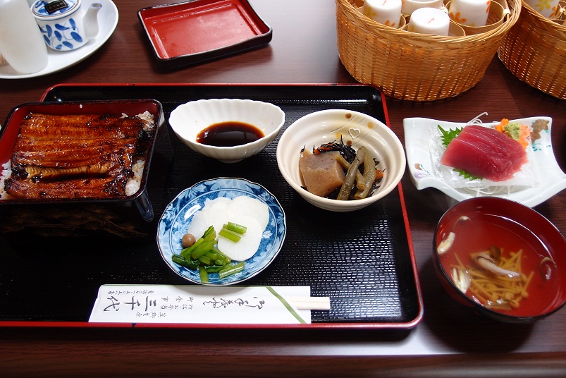 うな重、小鉢、吸物、香の物。刺身まで付いてきました!