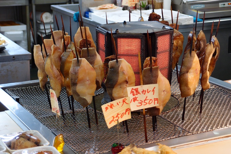 で、もうひとつ食べたかったのは油が滴りながら焼かれている「銀ガレイ」です。