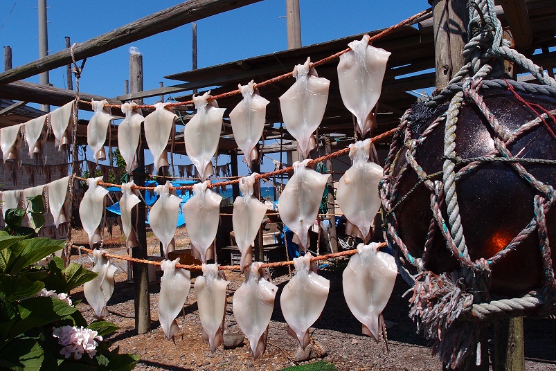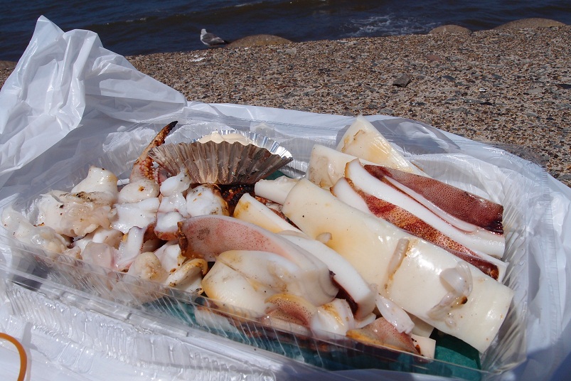 海とカモメを見ながらイカを食べたり。イカのカーテンを見学したり。