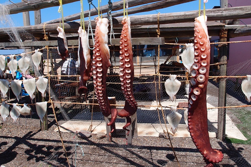 タコの足も干されていれ、これも美味しそうでした。しかも安いし、すぐに帰るなら買いたかったです。