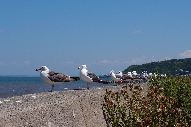 店頭で焼いているので、注文してから海側を散歩しながらカモメを激写。