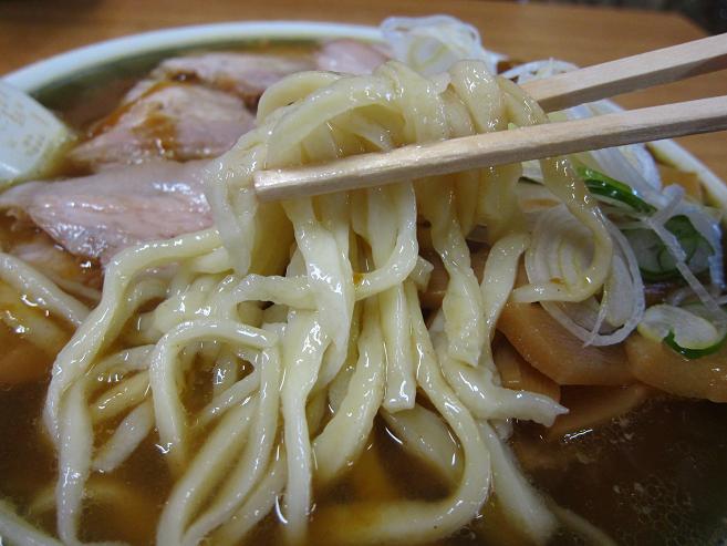 カタメでお願いした麺は手打の太い縮れ麺です。