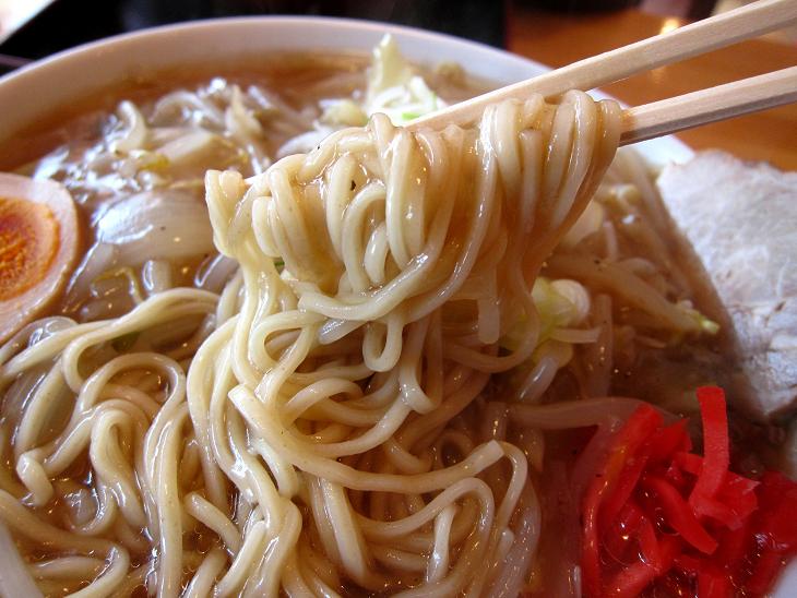たぶん味噌ラーメンは中太縮れ麺、醤油や塩は中細ストレート麺に