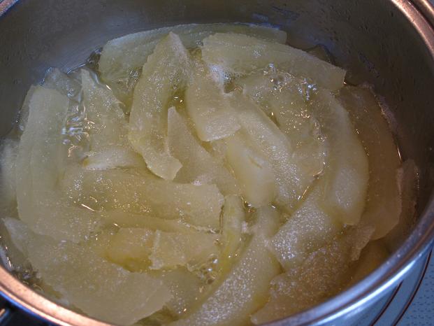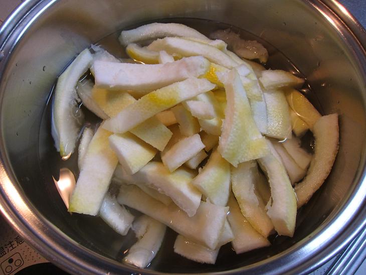 皮の重量と同じくらいの砂糖を入れます。(適当ですw)