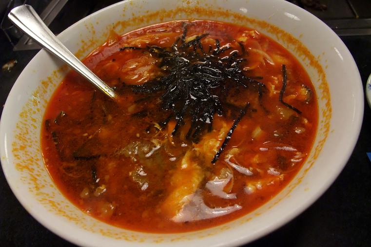 赤が強く出ているスープですが、見た目ほど辛くはないですが、
