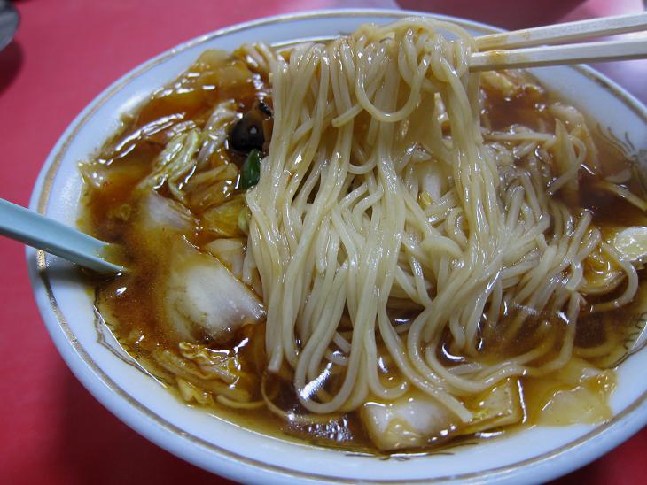 麺は手打麺です。ツルツルした中華屋さんの麺ですね。