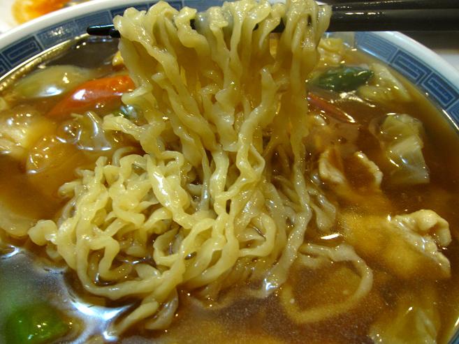 広東麺は甘味がある餡が多い気がするのですが、ここのは辛い