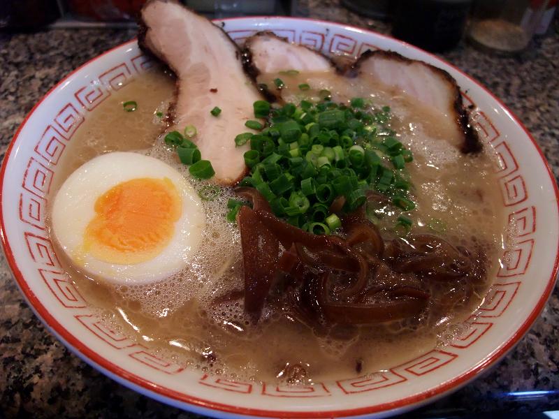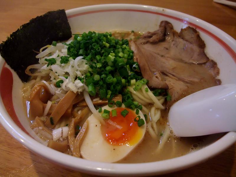 チャーシュー、半ゆで卵、キクラゲ、ネギが載ります。