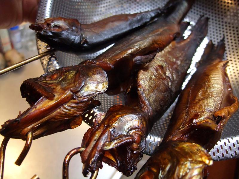 自家製マスの燻製ですよー。