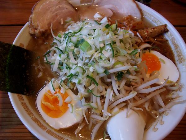 麺300g、チャーシュー2枚、玉子、メンマ、もやし、ねぎ、のり。