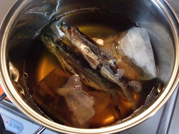 あご煮干はトースターで炙ってから入れる。