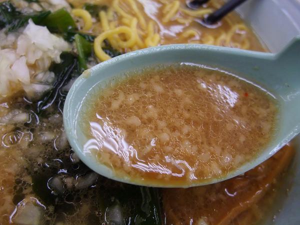 背脂が浮いた茶濁したスープ