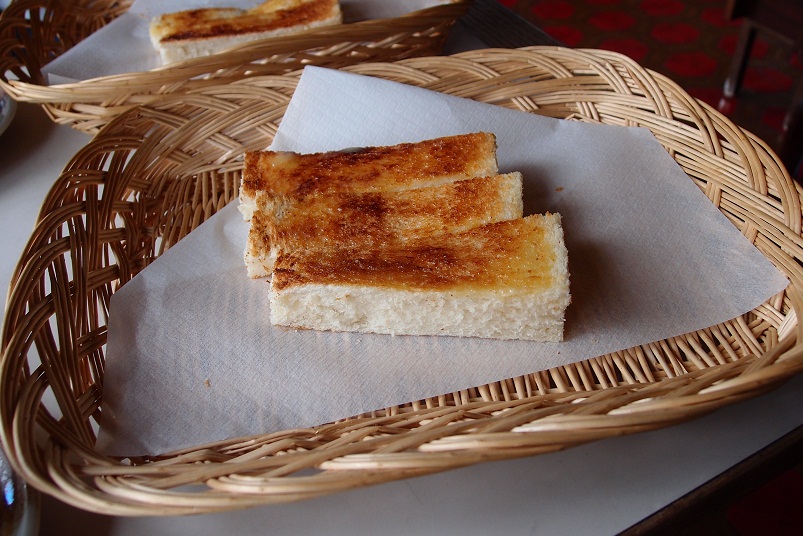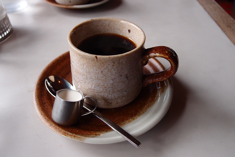 カウンターの向こうからガリガリする音がしたあとに珈琲とトーストが来ました。