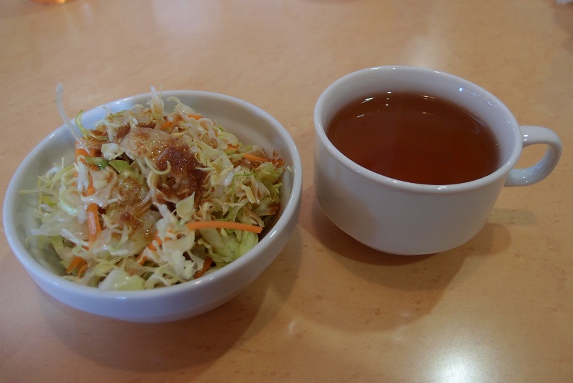 そして、セルフサービスですがスープとサラダも付いてきました。(食べ放題ではありません)