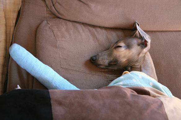 先生の気分も快晴か?今日の包帯はスカイブルーだ。