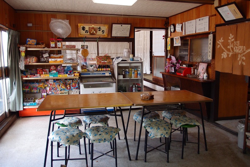 店内はテーブル席があり、その横には懐かしい駄菓子の販売もしています。