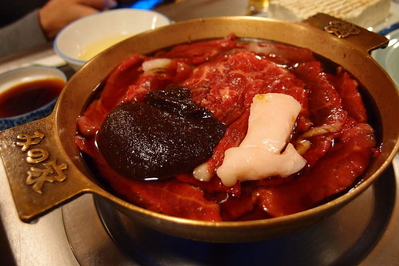 桜なべは切り落としのようで、ロースと一緒に来ました。銅の鍋がいい感じです。