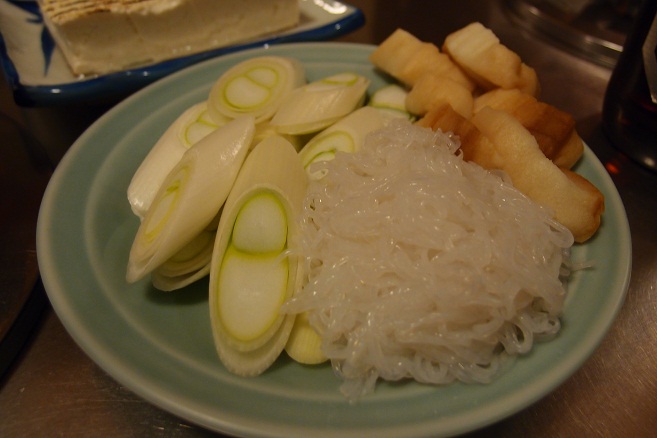 付属で長ネギ、白滝、麩も1皿来ました。