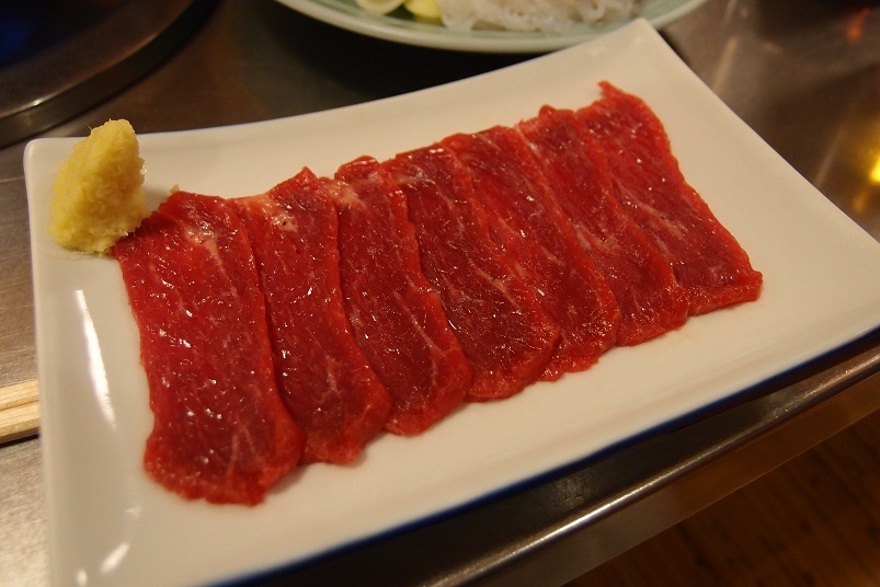 馬肉の刺身です。筋っぽさは皆無で柔らかくて美味しいです。そりゃそうだわ、この値段ですからね。