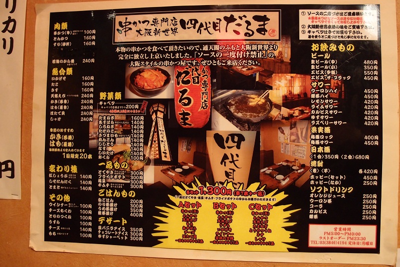 【大阪新世界串かつ 四代目だるま 菊川店】