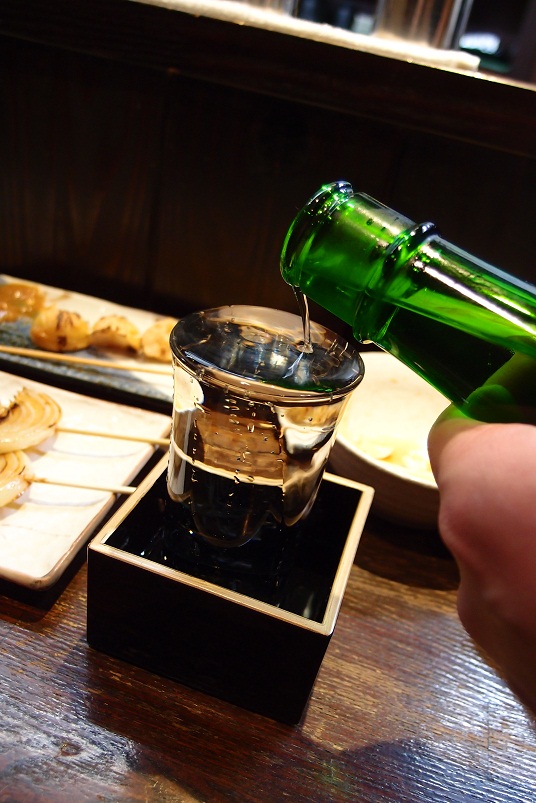 注いでるところを激写!シャッター押さなかったら枡までいっぱいになったのかな?(笑)
