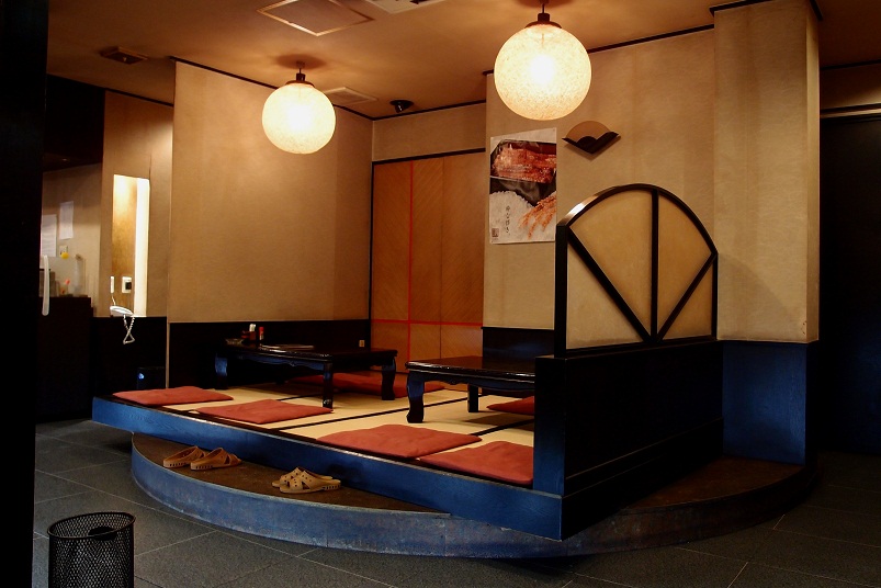 真っ赤な派手な入口、店内は手前に座敷、奥にカウンターがあるようでした。