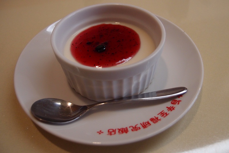 ブルーベリーソース?のかかった杏仁豆腐でした。こちらは普通の杏仁豆腐でした。