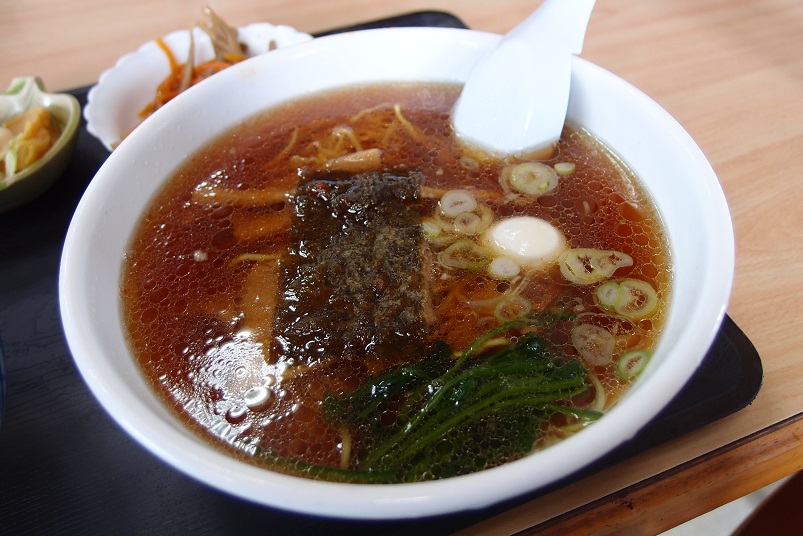 ラーメンは中華屋さんの懐かしい中華そば的な味プラス唐辛子?ラー油?が入ってちょっぴりピリ辛。