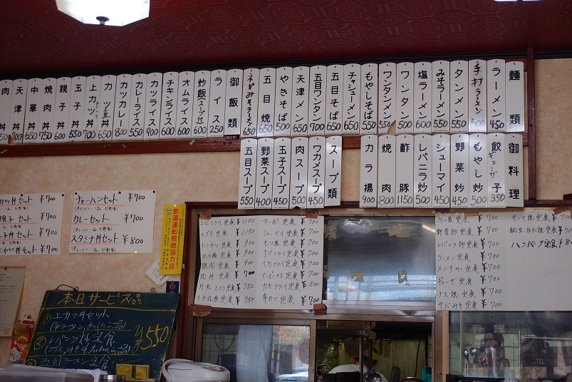 壁に貼られた単品メニューは何にしようか迷うくらいあります。