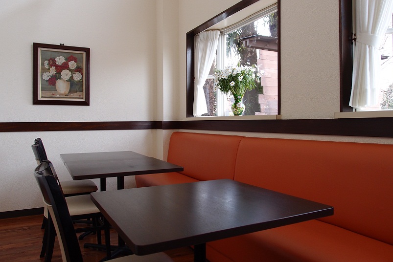 4人掛けのテーブルが2つ、2掛けのテーブルが2つと、かなり小規模です。