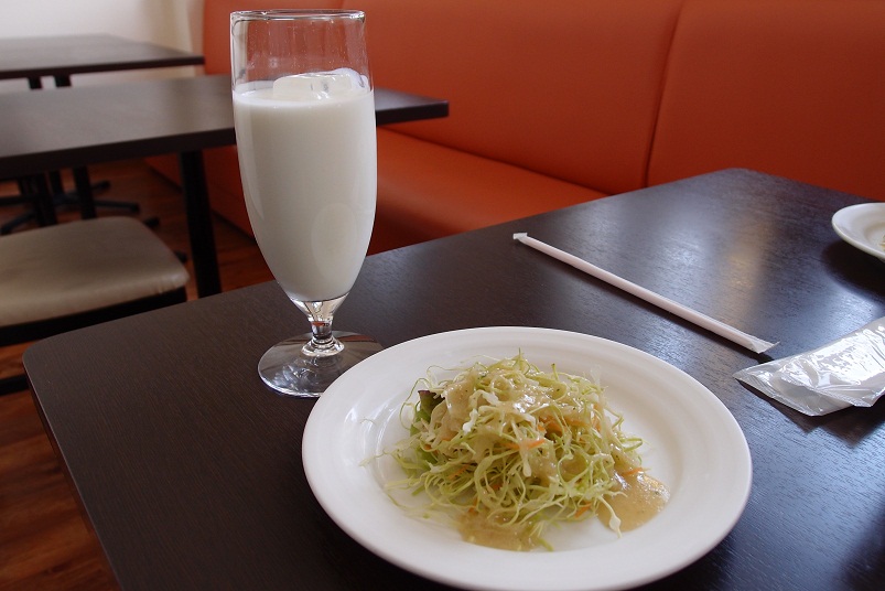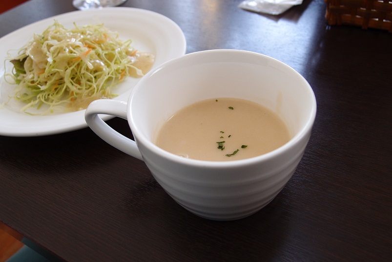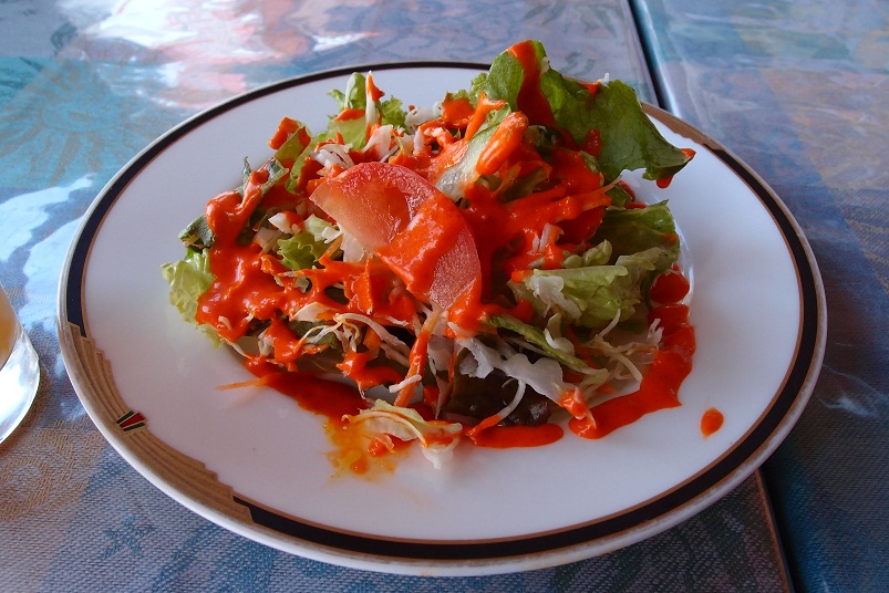 サラダはケチャップ系のドレッシング?こっそりスパイスが効いてます。