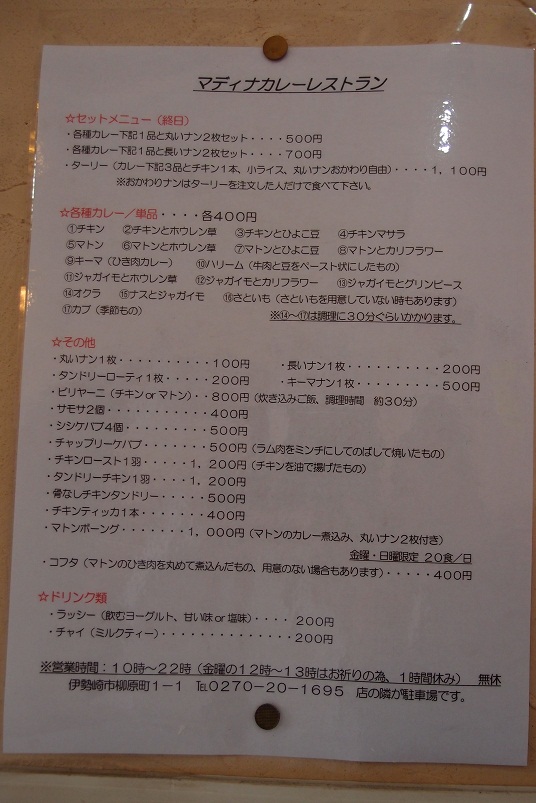 異国の味を求めて伊勢崎市の『カレーレストラン マーディナ』に行って来ました。