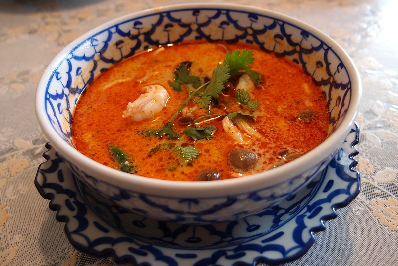 辛さ、酸味は控えめなトムヤムクンです。濃厚でクリーミーに感じるのはココナッツミルクが多めに入っているからでしょう。