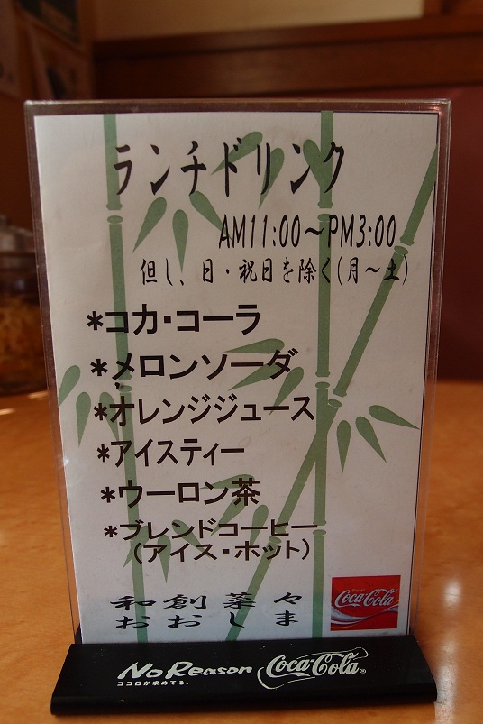 日曜祝日以外はランチにソフトドリンクが付きます。